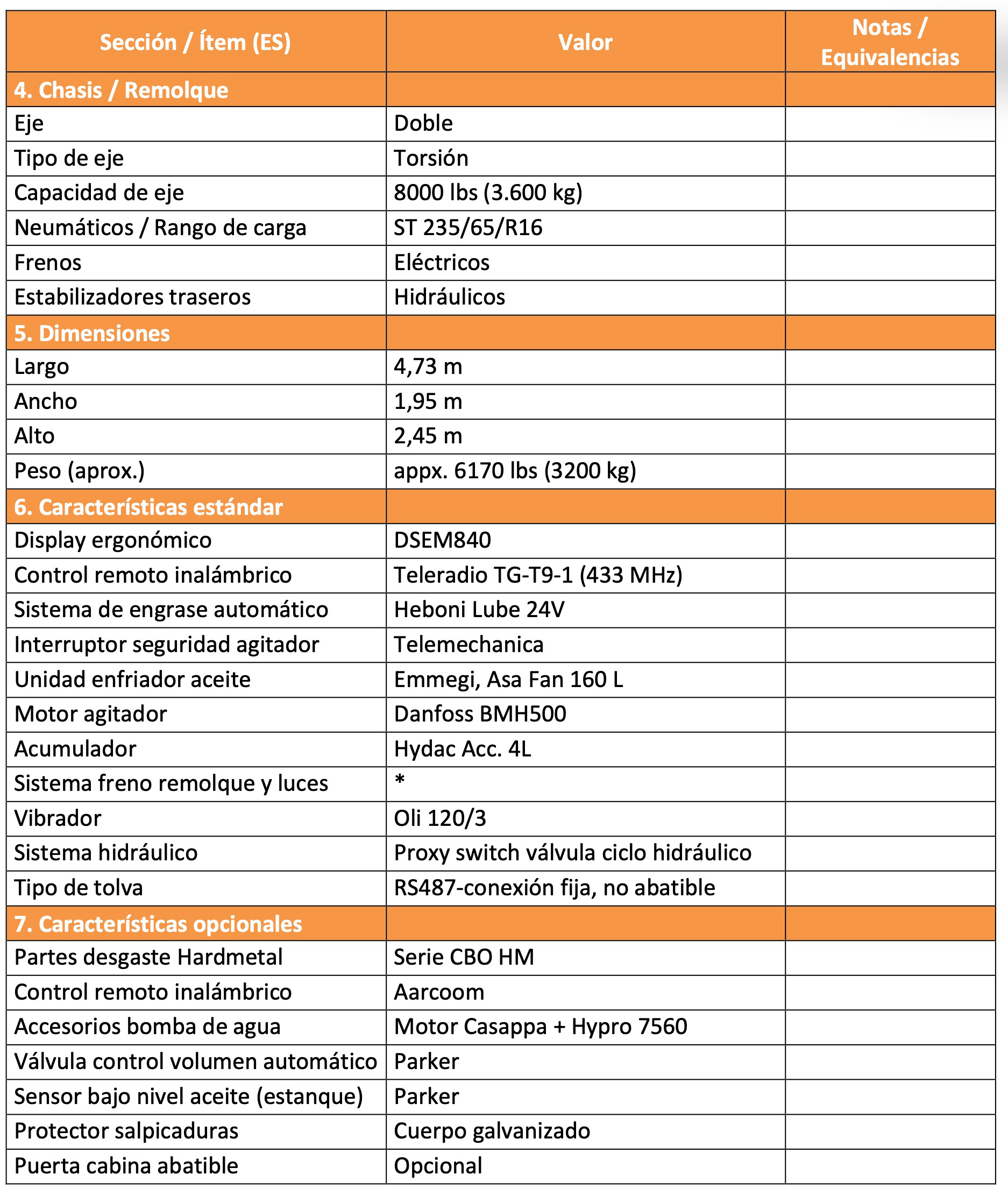 • Chasis doble eje + estabilizadores hidráulicos: mayor estabilidad, seguridad operacional y facilidad de traslado en obra.